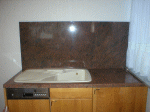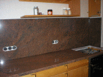 Küchenarbeitsplatten mit Rückwand-Verkleidung fugenlos.