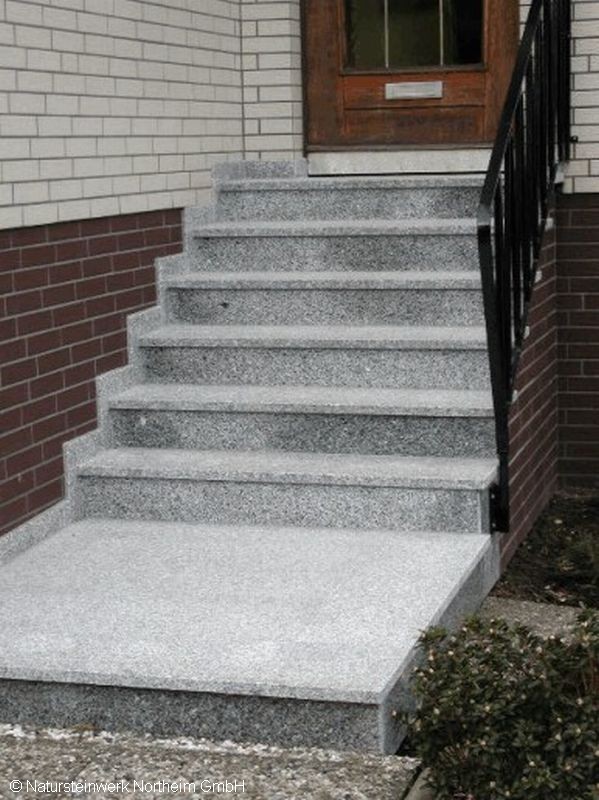 Gerade Tritt- und Setzstufen aus Griss Christall geflammt/poliert.